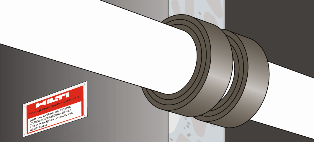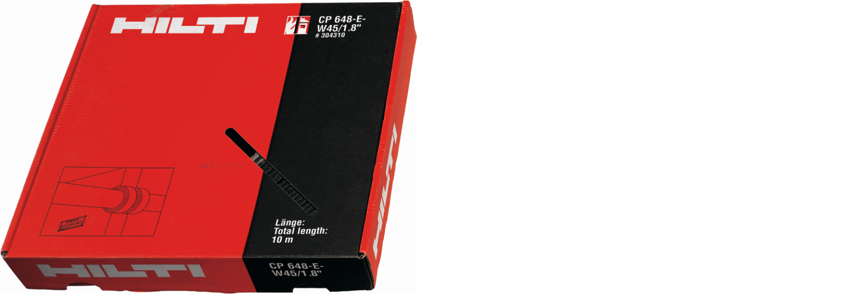 • An intumescent, flexible firestop wrap strip for combustible pipe penetrations